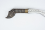 FIGHTING KNIVES. The men are essentially warriors and are never seen without their weapons. These heavy fighting knives are greatly valued and are always ornamented with silver bands. All the iron and steel weapons used by this tribe are secured in trade from the neighboring Mandaya or Manobo. DIVAVAOAN. Southeastern Mindanao, Philippine Islands. Robert F. Cummings Expedition. F.C. Cole, Collector.